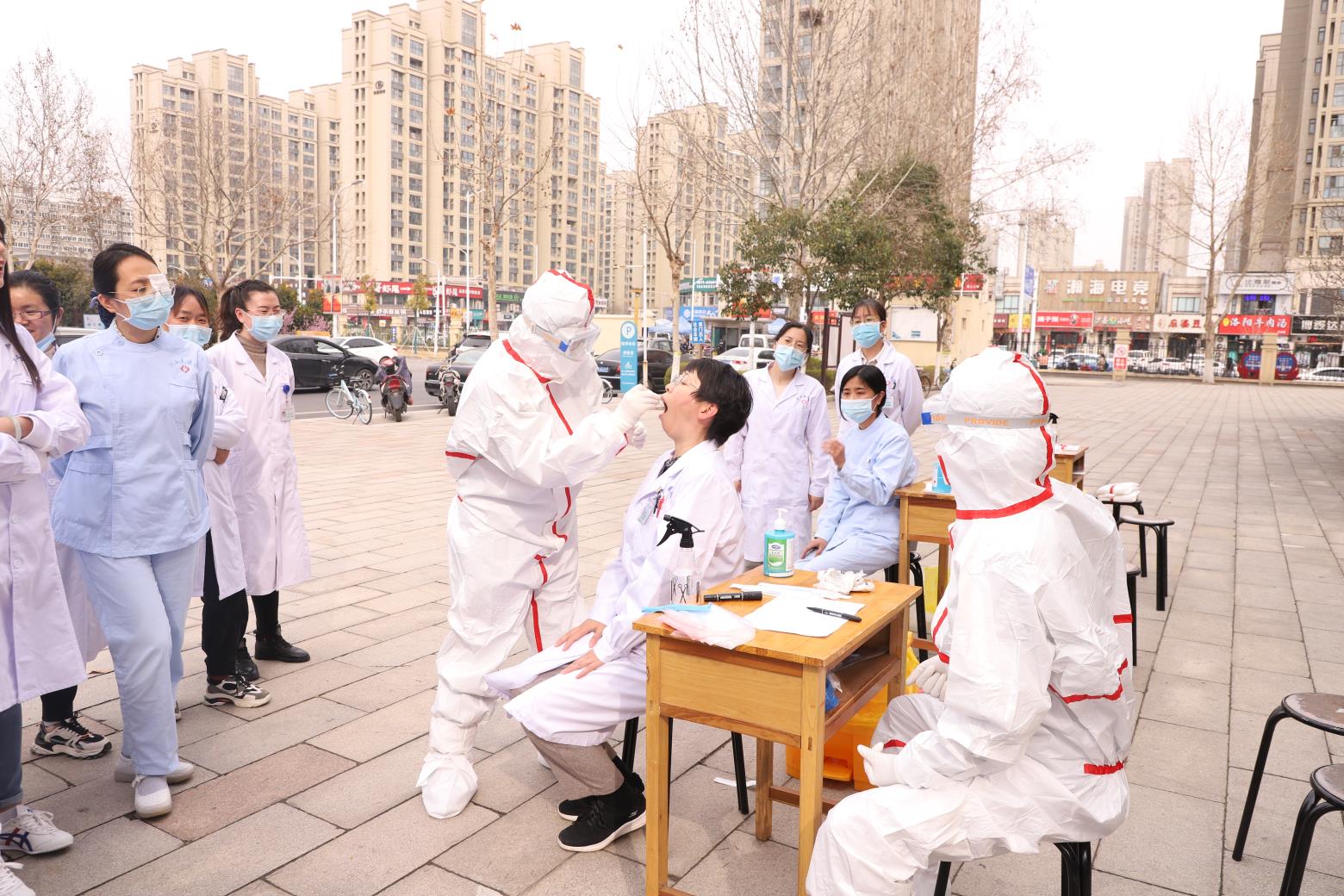 3月5日下午全体医护人员在校医院北门进行新冠肺炎核酸检测咽拭子标本采集操作培训。路伟红和薛娇给大家做了讲解和演示,随后全体医护人员逐一进行了演练,达到了全员熟练掌握。