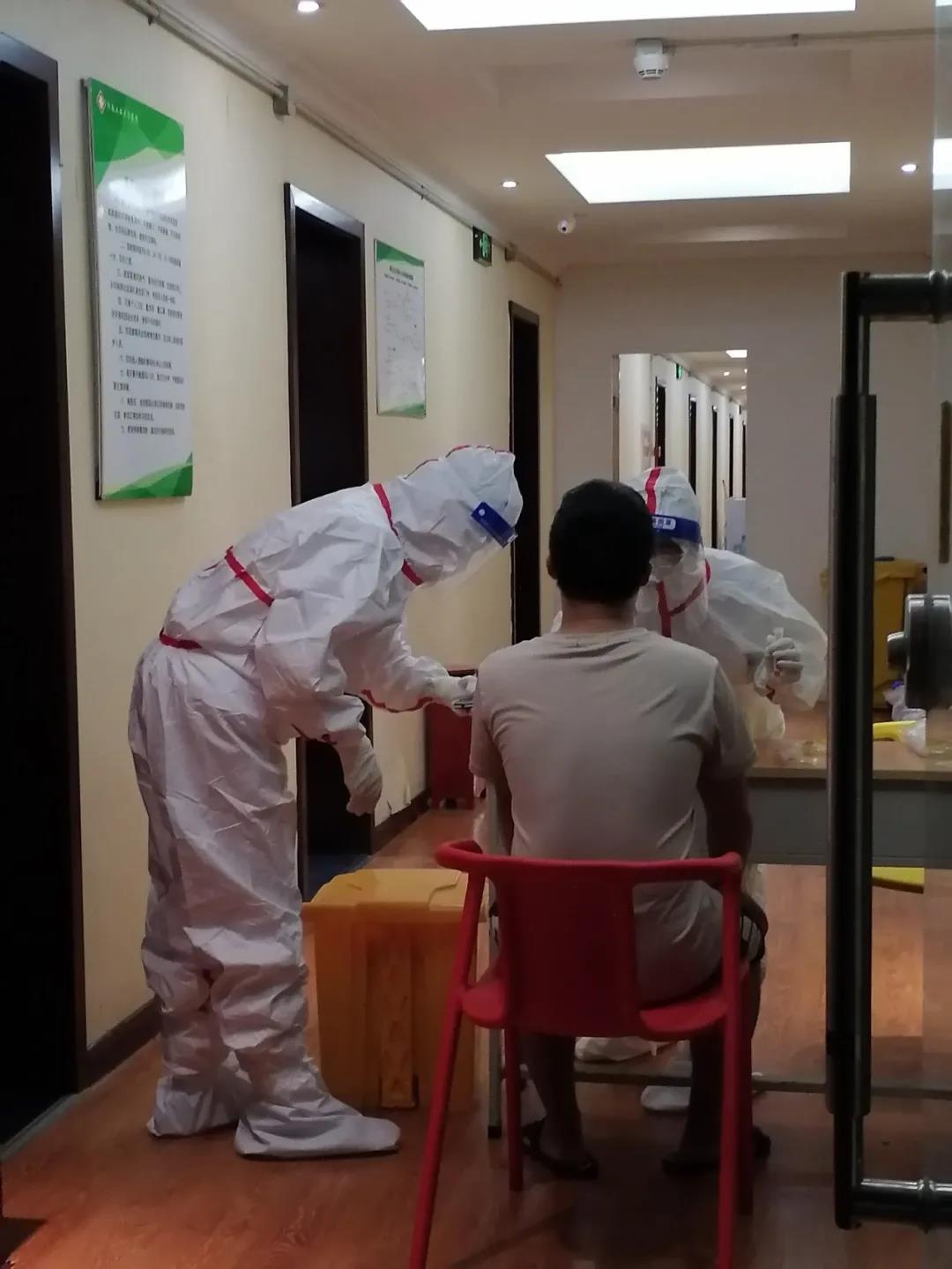 8月5日晚上,校医院护士薛娇忙完校内师生的核酸检测采样工作,回到自已居住的小区学府欣园看到园区内核酸检测采样点排起了长龙,却只有一名医务人员在采样时,还没进家门就又穿上防护服加入新的采样队伍,一直工作到凌晨三点。为了全民健康,他们都在默默无闻奉献自已。