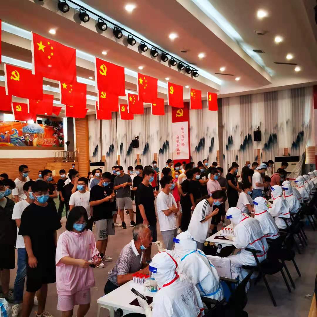 8月5日下午,接到郑州市高新区管委会第二轮核酸检测的命令后,校医院第一时间组织医务人员22人赶赴学校25号楼学生事务中心核酸检测采样大厅对我校师生开展核酸检测采样工作。采样工作从下午4点开始,经过5个多小时的奋战,完成了在校师生5279人筛查工作。为了方便医学观察区留观学生的核酸检测,校医院医务人员陈辉、张帅丹亲自上门到观察区为11名学生采样。同时,按照高新区管委会的统一安排,8月5日下午,校医院在人员紧张的情况下安排王凤霞、顾巧娟两名医护人员到郑州轻工业大学,支援郑州轻工业大学留校学生的核酸检测采样工作。