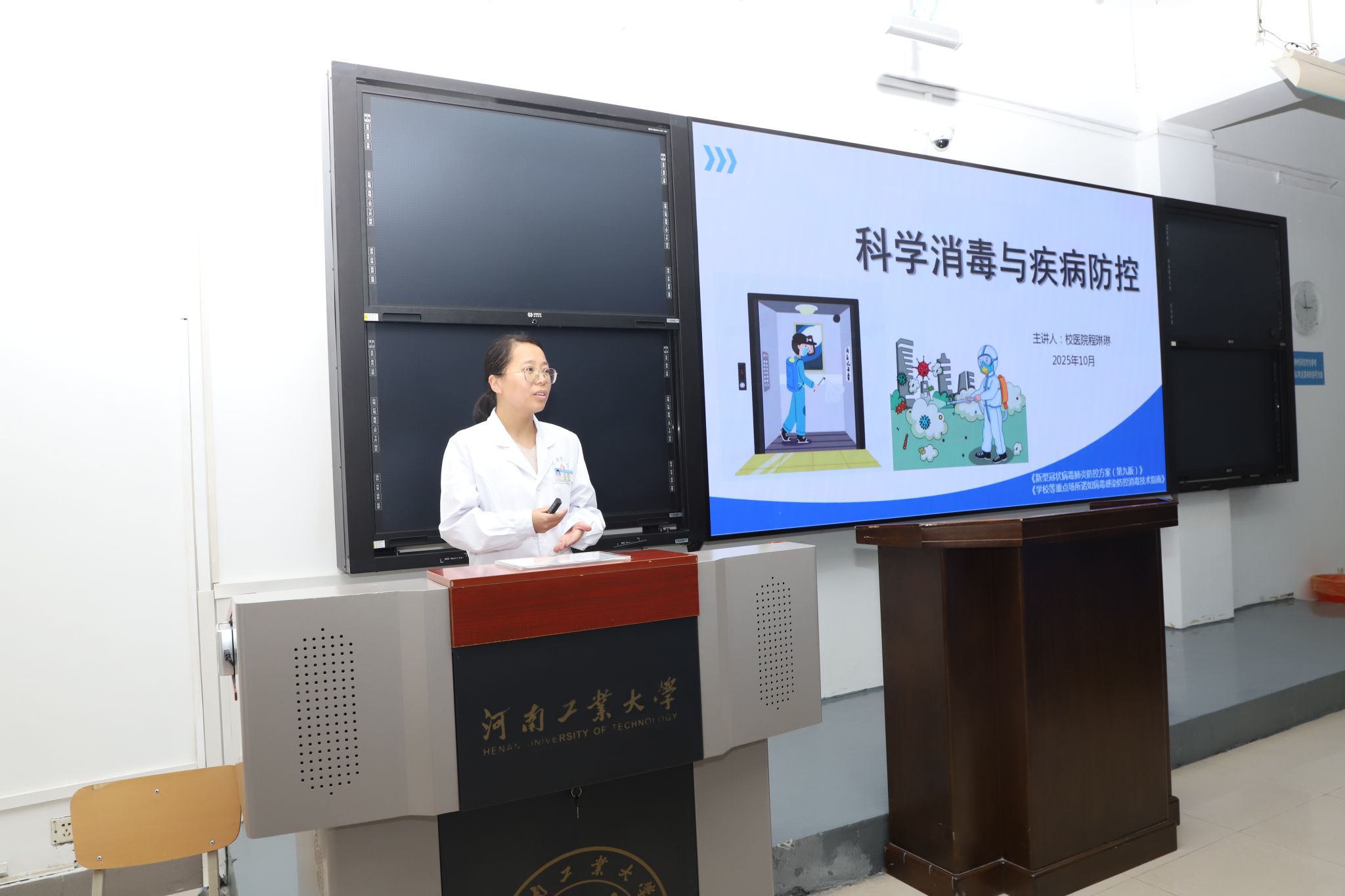 为持续巩固校园卫生安全防线,提升一线后勤服务保障人员的科学消毒与疾病防控能力,10月30日下午,校医院公共卫生科副科长程琳琳在4号楼4221教室为后勤服务中心物业服务科工作人员进行了一场专业、实用的专题培训。此次培训覆盖了物业管理、宿舍管理、教学楼管理及保洁等所有一线岗位人员。
