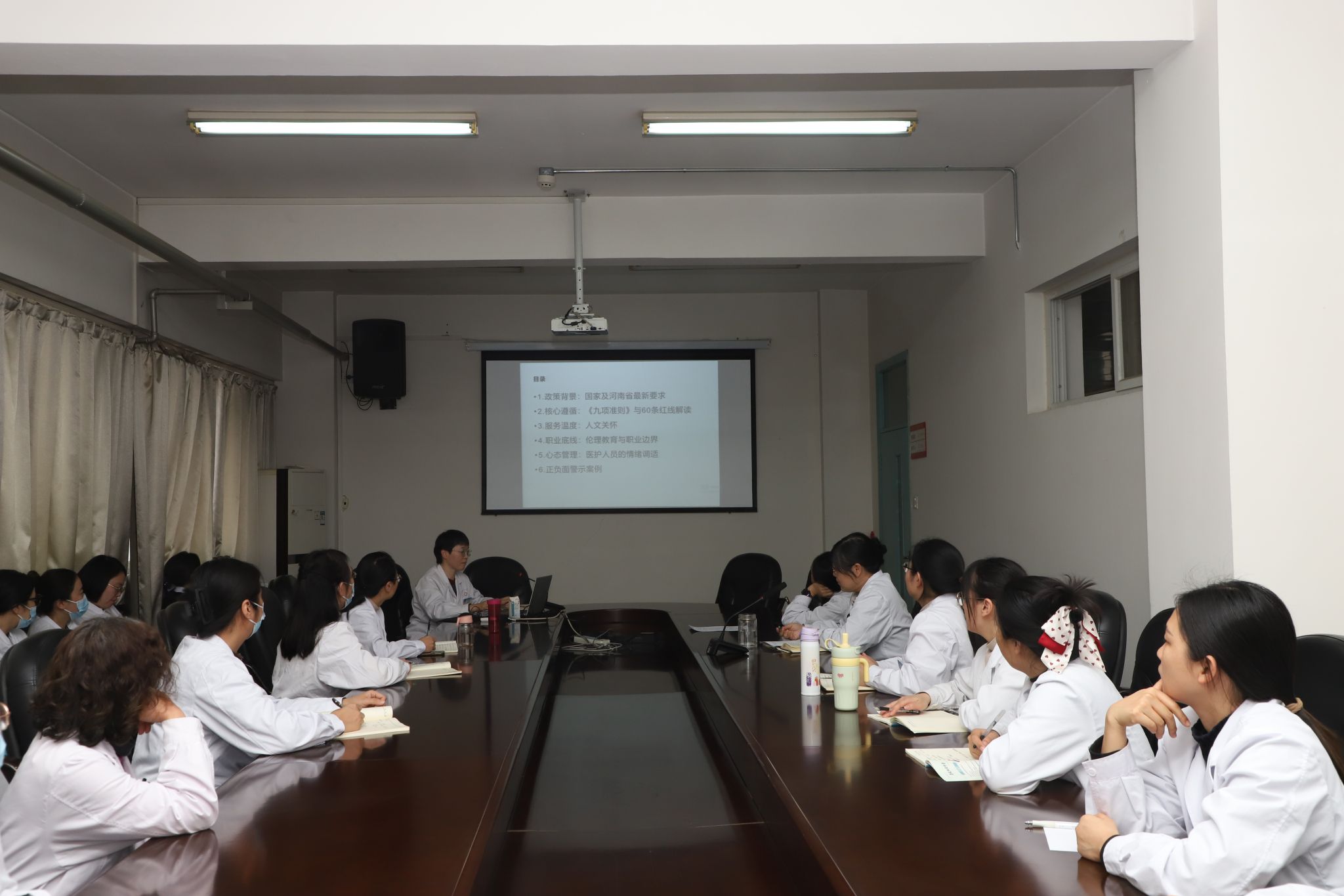 随后,医务科科长陈辉就规范书写门诊病历进行了讲解。她依据医疗质量安全核心制度与病历书写基本规范,详细剖析了门诊病历书写中常见的问题与不足,从主诉、现病史、体格检查到诊断处理意见,逐一讲解了规范书写的要点与内涵,并深刻阐述了规范书写病历在保障医疗安全、维护医患双方合法权益中的关键作用,提醒全体医务人员务必树立严谨的医疗质量安全意识和法律意识,将规范书写作为日常工作的自觉行为。