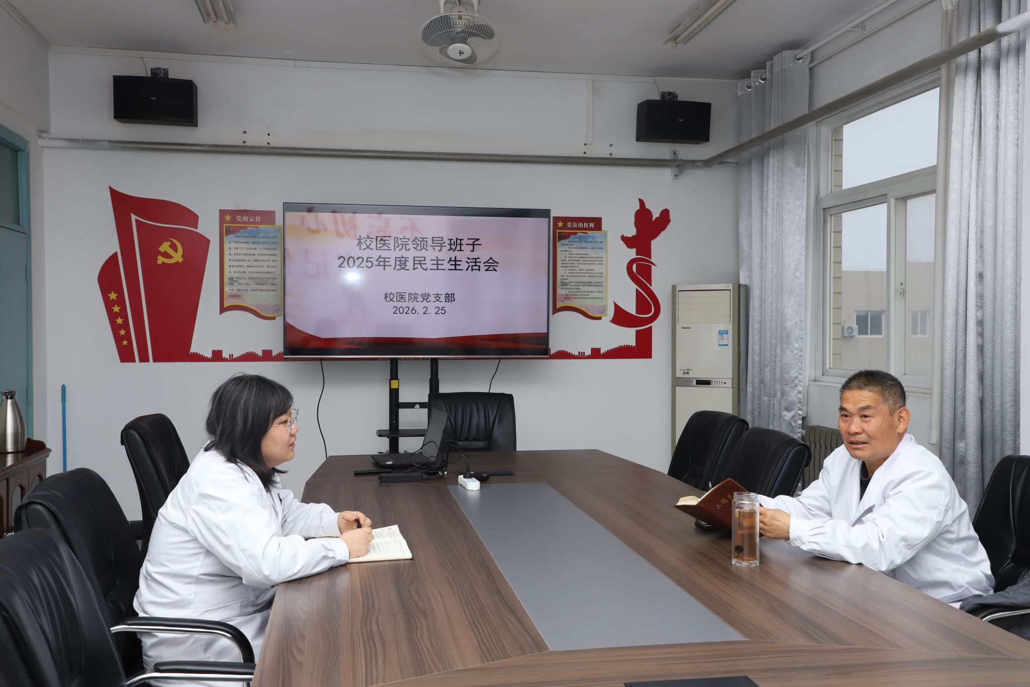 2月25日,校医院2025年度领导班子民主生活会在五楼502会议室召开,会议由党支部书记程建会主持,班子成员程建会、邵靓参会,紧扣“五个带头”要求深入查摆问题、开展批评与自我批评,明确后续整改方向。